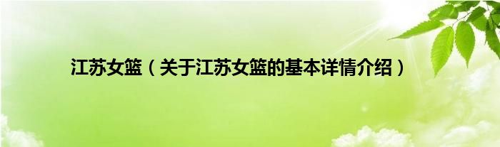 本文关于江苏女篮的基本详情介绍就讲解完毕,希望对大家有所帮助。
