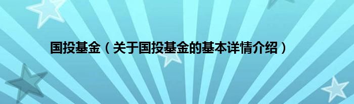 国投基金(关于国投基金的基本详情介绍)