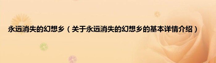 本文关于永远消失的幻想乡的基本详情介绍就讲解完毕,希望对大家有所帮助。