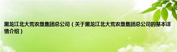 本文关于黑龙江北大荒农垦集团总公司的基本详情介绍就讲解完毕,希望对大家有所帮助。