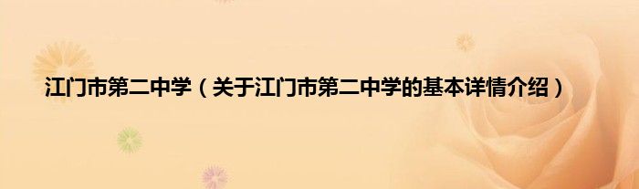 大家好我是小蝌蚪,江门市第二中学,关于江门市第二中学的基本详情介绍很多人还不知道,那么现在让我们一起来看看吧!