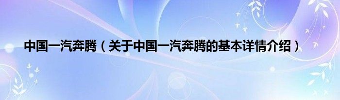 本文关于中国一汽奔腾的基本详情介绍就讲解完毕,希望对大家有所帮助。