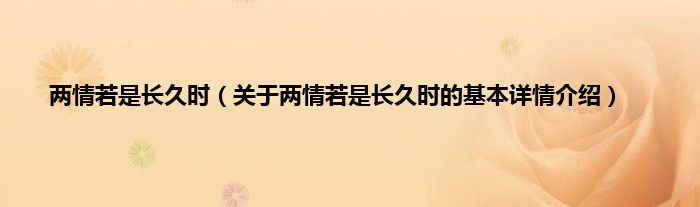 两情若是长久时(关于两情若是长久时的基本详情介绍)