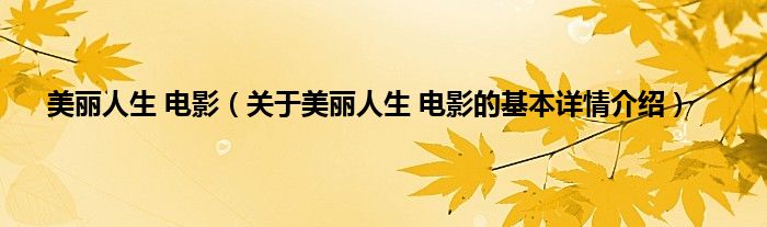 本文关于美丽人生 电影的基本详情介绍就讲解完毕,希望对大家有所帮助。