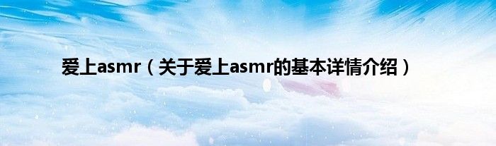 本文关于爱上asmr的基本详情介绍就讲解完毕,希望对大家有所帮助。