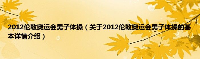本文关于2012伦敦奥运会男子体操的基本详情介绍就讲解完毕,希望对大家有所帮助。