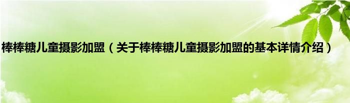 本文关于棒棒糖儿童摄影加盟的基本详情介绍就讲解完毕,希望对大家有所帮助。