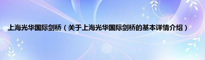 本文关于上海光华国际剑桥的基本详情介绍就讲解完毕,希望对大家有所帮助。