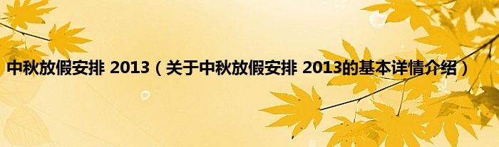 本文关于中秋放假安排 2013的基本详情介绍就讲解完毕,希望对大家有所帮助。