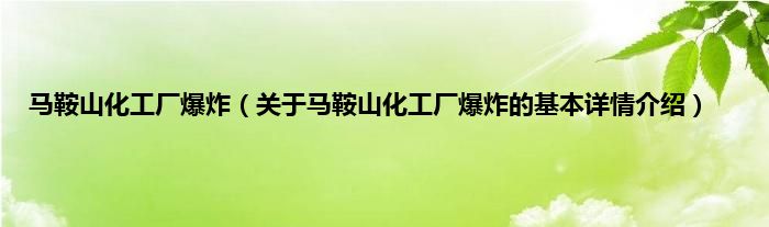 本文关于马鞍山化工厂爆炸的基本详情介绍就讲解完毕,希望对大家有所帮助。