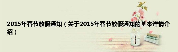 本文关于2015年春节放假通知的基本详情介绍就讲解完毕,希望对大家有所帮助。