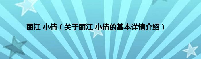 本文关于丽江 小倩的基本详情介绍就讲解完毕,希望对大家有所帮助。