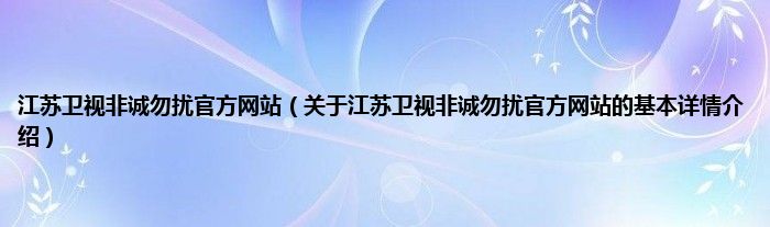 本文关于江苏卫视非诚勿扰官方网站的基本详情介绍就讲解完毕,希望对大家有所帮助。