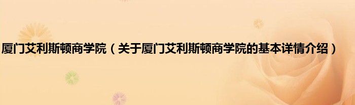 本文关于厦门艾利斯顿商学院的基本详情介绍就讲解完毕,希望对大家有所帮助。