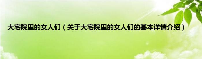 大宅院里的女人们(关于大宅院里的女人们的基本详情介绍)