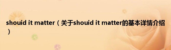 本文关于shouid it matter的基本详情介绍就讲解完毕,希望对大家有所帮助。