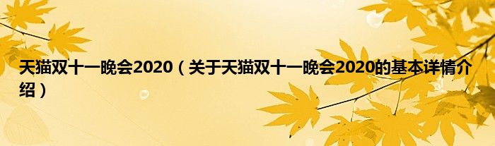 本文关于天猫双十一晚会2020的基本详情介绍就讲解完毕,希望对大家有所帮助。