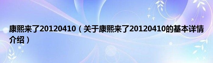 本文关于康熙来了20120410的基本详情介绍就讲解完毕,希望对大家有所帮助。