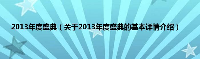 本文关于2013年度盛典的基本详情介绍就讲解完毕,希望对大家有所帮助。