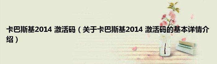 本文关于卡巴斯基2014 激活码的基本详情介绍就讲解完毕,希望对大家有所帮助。