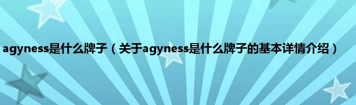 本文关于agyness是什么牌子的基本详情介绍就讲解完毕,希望对大家有所帮助。