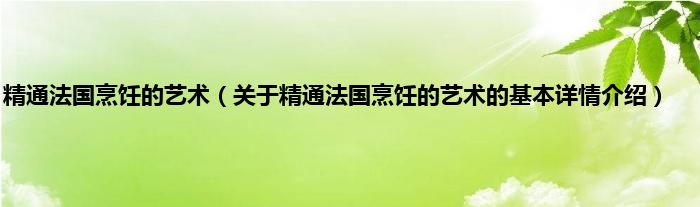 本文关于精通法国烹饪的艺术的基本详情介绍就讲解完毕,希望对大家有所帮助。