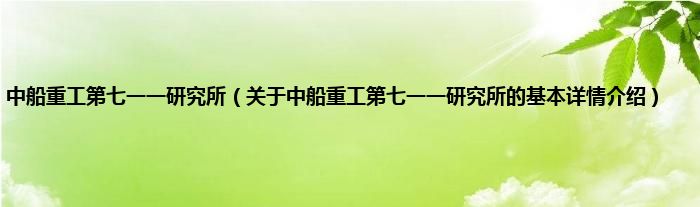 本文关于中船重工第七一一研究所的基本详情介绍就讲解完毕,希望对大家有所帮助。