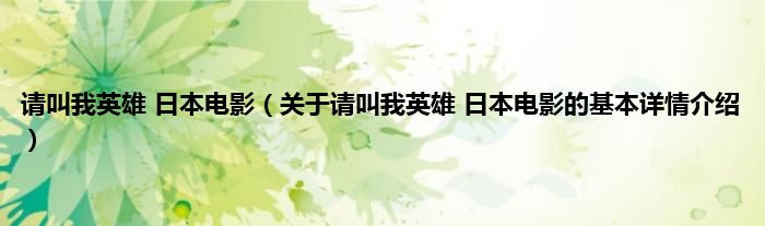 本文关于请叫我英雄 日本电影的基本详情介绍就讲解完毕,希望对大家有所帮助。