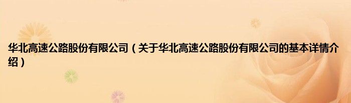本文关于华北高速公路股份有限公司的基本详情介绍就讲解完毕,希望对大家有所帮助。