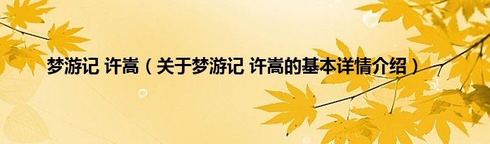 本文关于梦游记 许嵩的基本详情介绍就讲解完毕,希望对大家有所帮助。