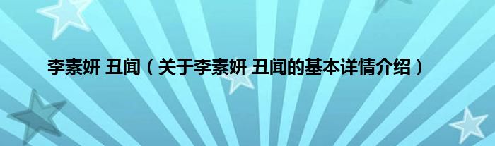 本文关于李素妍 丑闻的基本详情介绍就讲解完毕,希望对大家有所帮助。