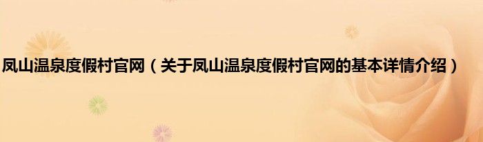 本文关于凤山温泉度假村官网的基本详情介绍就讲解完毕,希望对大家有所帮助。