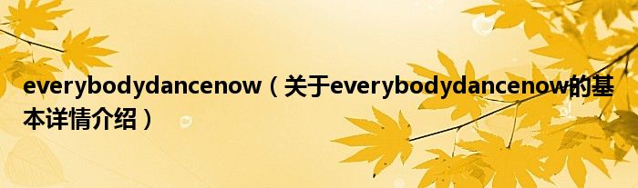 本文关于everybodydancenow的基本详情介绍就讲解完毕,希望对大家有所帮助。