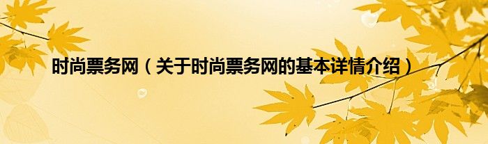 本文关于时尚票务网的基本详情介绍就讲解完毕,希望对大家有所帮助。