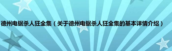 本文关于德州电锯杀人狂全集的基本详情介绍就讲解完毕,希望对大家有所帮助。