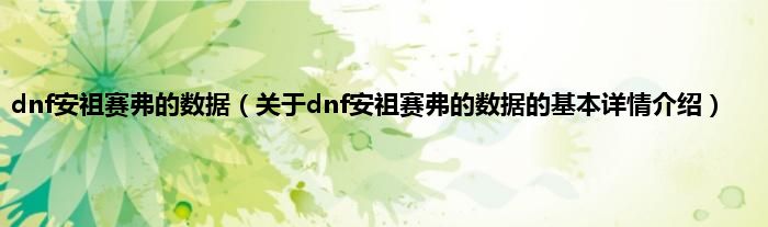 dnf安祖赛弗的数据(关于dnf安祖赛弗的数据的基本详情介绍)