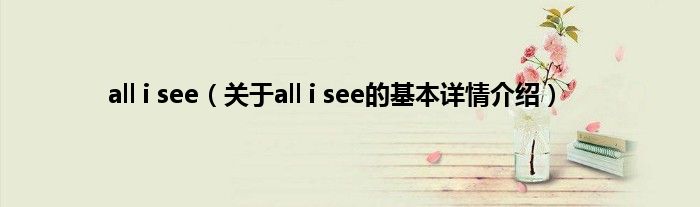 本文关于all i see的基本详情介绍就讲解完毕,希望对大家有所帮助。
