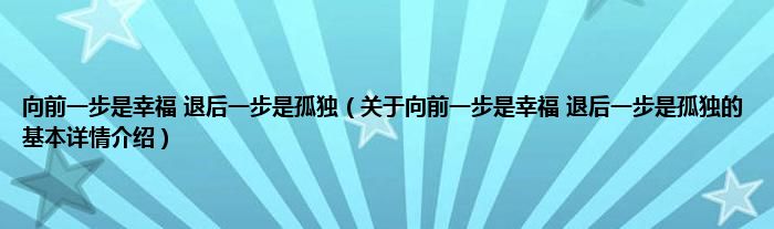 本文关于向前一步是幸福 退后一步是孤独的基本详情介绍就讲解完毕,希望对大家有所帮助。