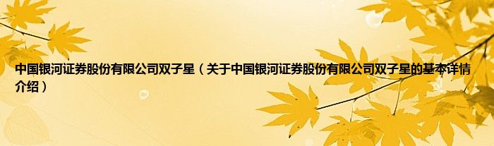 本文关于中国银河证券股份有限公司双子星的基本详情介绍就讲解完毕,希望对大家有所帮助。