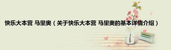 本文关于快乐大本营 马里奥的基本详情介绍就讲解完毕,希望对大家有所帮助。