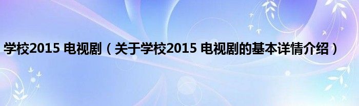 本文关于学校2015 电视剧的基本详情介绍就讲解完毕,希望对大家有所帮助。