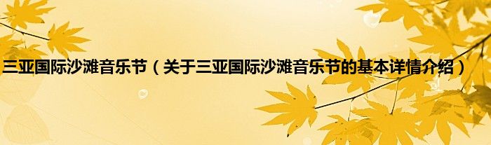 本文关于三亚国际沙滩音乐节的基本详情介绍就讲解完毕,希望对大家有所帮助。