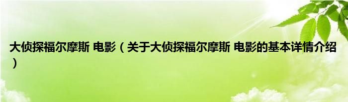 本文关于大侦探福尔摩斯 电影的基本详情介绍就讲解完毕,希望对大家有所帮助。