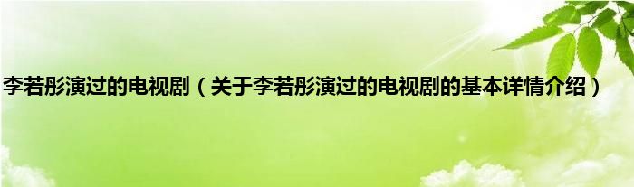 本文关于李若彤演过的电视剧的基本详情介绍就讲解完毕,希望对大家有所帮助。