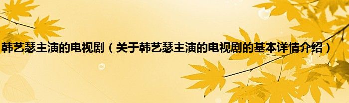 本文关于韩艺瑟主演的电视剧的基本详情介绍就讲解完毕,希望对大家有所帮助。