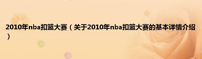 本文关于2010年nba扣篮大赛的基本详情介绍就讲解完毕,希望对大家有所帮助。