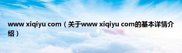 www xiqiyu com(关于www xiqiyu com的基本详情介绍)