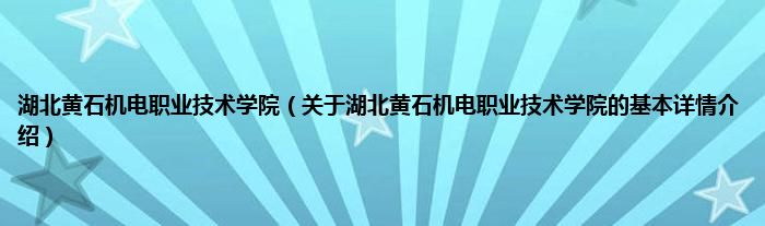 本文关于湖北黄石机电职业技术学院的基本详情介绍就讲解完毕,希望对大家有所帮助。
