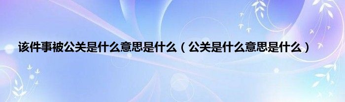 大家好,小问来为大家解答以上问题。该件事被公关是什么意思是什么,公关是什么意思是什么这个很多人还不知道,现在让我们一起来看看吧!