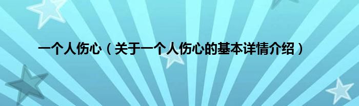 本文关于一个人伤心的基本详情介绍就讲解完毕,希望对大家有所帮助。